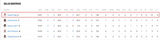 弗拉格首秀对阵雷霆14分钟,6中3,三分3中2,拿到10分6篮板3助攻1盖帽,命中率50%,三分命中率66.7%,很明显弗拉格还是更喜欢接球投篮与接球顺步突破,他要打个人持球攻在NBA很痛苦。