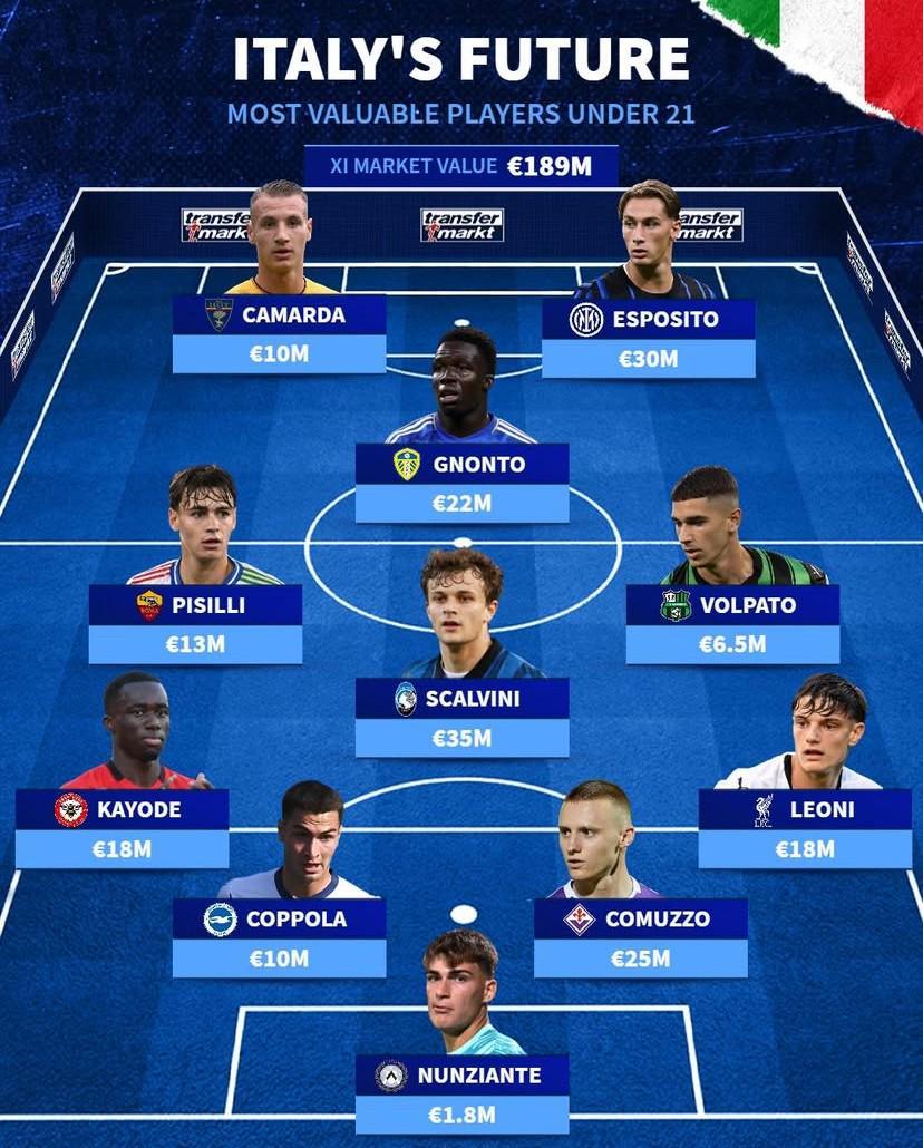德转列意大利最贵U21阵容:皮奥、卡马尔达、莱昂尼在列